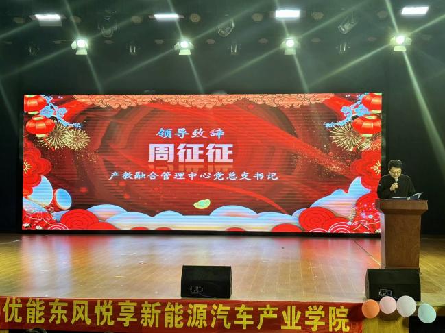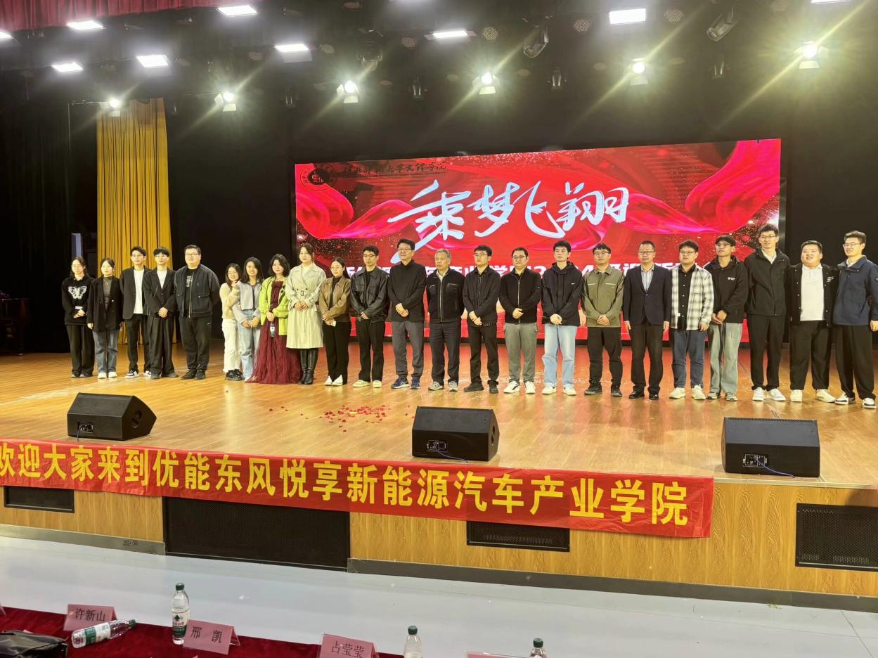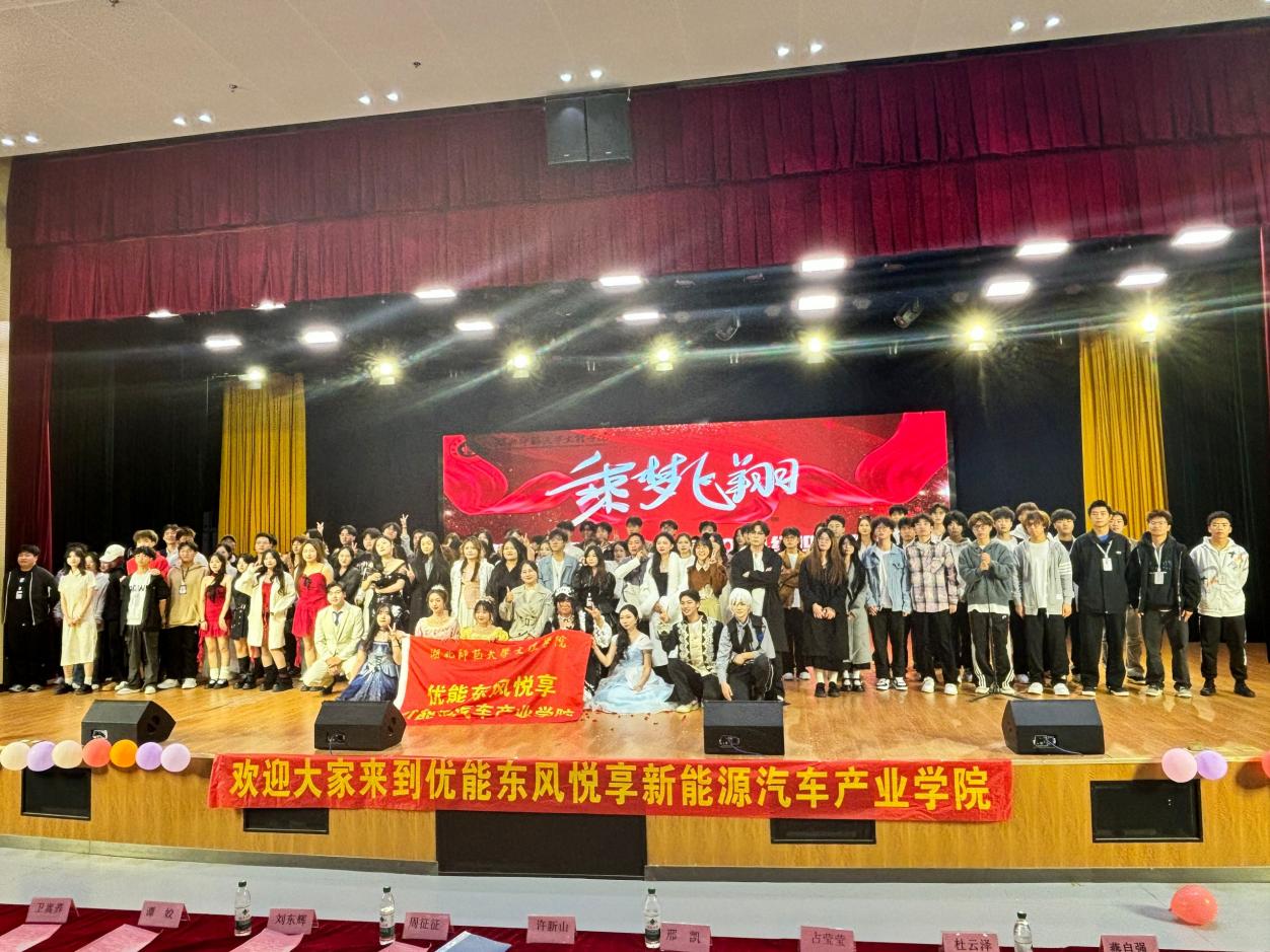2024年10月22日,米兰体育网页版优能东风悦享新能源汽车产业学院在学术交流中心举办了“乘梦飞翔”2024级迎新晚会。米兰体育网页版产教融合管理中心党支部书记周征征、米兰体育网页版教育与艺术学部团学指导老师刘东辉、米兰体育网页版优能东风悦享新能源汽车产业学院院长许新山和全体教职工老师以及全体2024级新生等参加了本次迎新晚会。