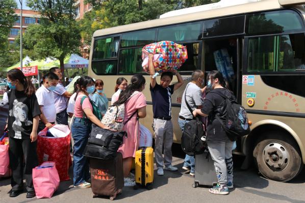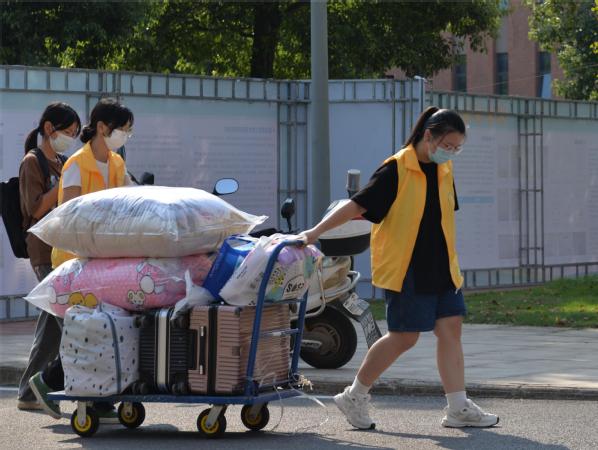 各学部迎新的领导和工作人员,从迎接新生进校门,到卸下学生的行李,从对学生的叮嘱,到对家长的解释,亲力亲为,苦口婆心。
