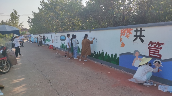 从早上八点到晚上六点,在3米高57米长的文化墙上,团队成员通过自己的努力,践行了党员干部暖民心的诺言,展现了教育与艺术学部美术学专业学子的魅力,贡献了自己在美丽乡村建设中的力量。活动得到了汪仁镇政府党有关领导、汪仁社区书记与村民的赞叹与肯定。