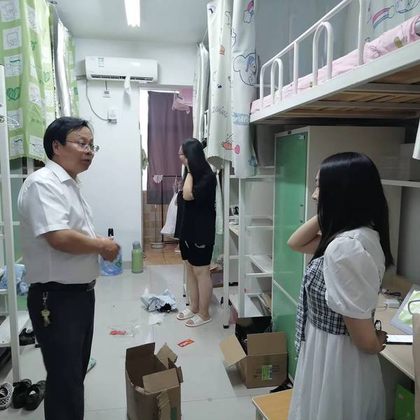 检查以安全为重点,查看了食品安全、消防疏散通道、消防设施器材;检查了学生是否存在违规使用大功率电器、是否在宿舍饲养宠物等情况。并对2022级新生进行了亲切的看望,提醒同学们遵守疫情防控要求,严格落实非必要不外出规定,如果有事外出要做好请假,并做好安全防护措施,同时对同学们进行了防范电信网络诈骗、交通安全等知识教育。