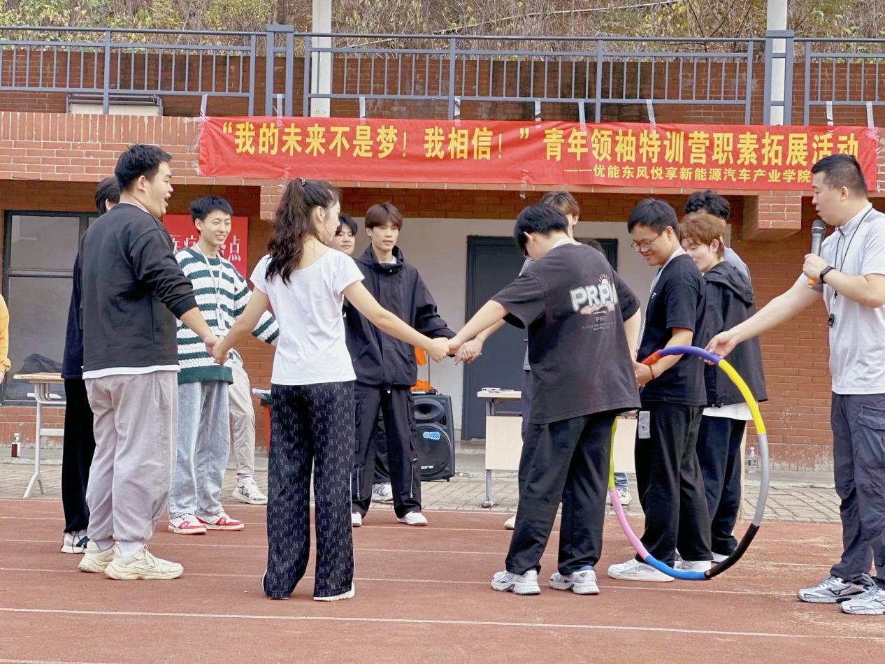 为了培养学生们的职业素养和团队协作能力,增强团学认同感和归属感,提升新老学生会成员的凝聚力,特此米兰体育网页版优能东风悦享新能源汽车产业学院于2023年10月28日在校足球场举办了“我的未来不是梦!我相信!”青年领袖特训营职素拓展活动。