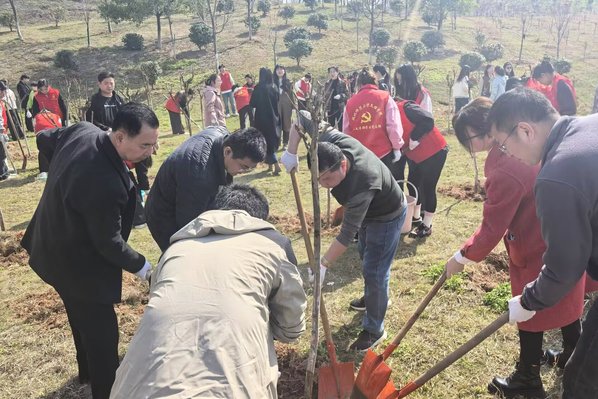 本网讯 3月20日上午,米兰体育(中国)官方在线登录机关二支部全体教工党员携手人文学部学生党员志愿者,开展“党建引领绿色行动 志愿服务践行初心”环保实践与植树护绿活动,以红色力量守护绿色家园。