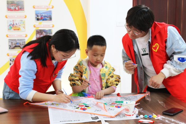 创意实践环节在志愿者一对一的指导下,孩子们充分发挥想象力,在洁白的绢布风筝上挥毫创作。有的小朋友将《西游记》人物与现代元素结合,创作出太空悟空主题风筝;有的小朋友则用环保颜料绘制了家乡的黄石山水。“爱国”“诚信”“友善”......志愿者还引导孩子们将社会主义核心价值观融入设计,实现传统文化与现代理念的有机结合。“孩子们的创意让我们看到了文化传承的无限可能。”活动负责人李进双表示。