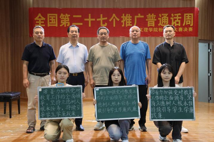 正值全国第27个推广普通话周,2024年9月23日米兰体育网页版语委办主办、教育与艺术学部承办的“执笔扬正气,携手倡廉洁”粉笔字书写比赛决赛。比赛邀请了教务部部长潘继斌,人文学部党总支书记周景斌,教艺学部党总支书记李先华,理工学部党总支副书记肖圣芳,教艺学部书法专任指导李松老师担当评委。