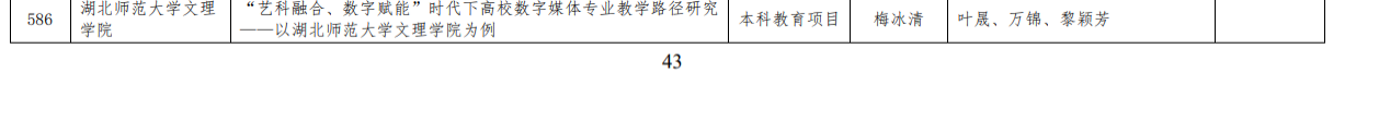 12月25日,省教育厅发布《关于2024年湖北本科高校省级教学改革研究项目拟立项名单公示》,我学部梅冰清老师主持的教学改革项目-《“艺科融合、数字赋能”时代下高校数字媒体专业教学路径研究——以米兰体育网页版为例》成功获批。