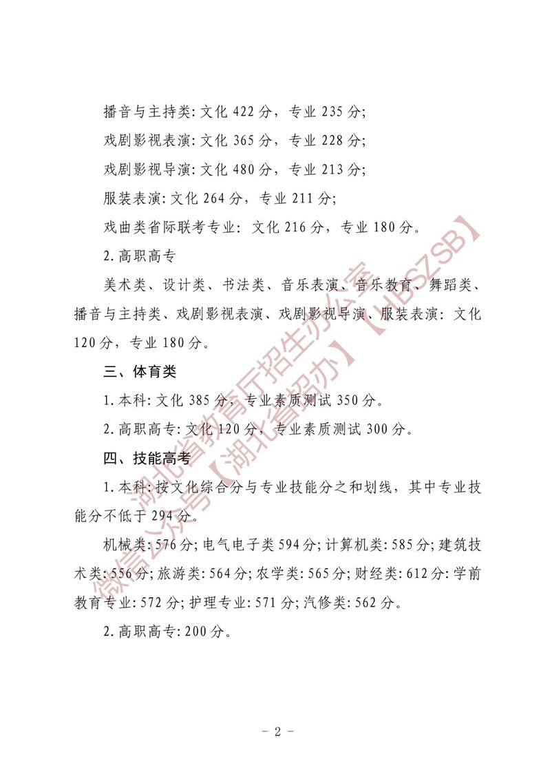 湖北省教育厅关于湖北省2024年普通高校招生录取控制分数线的通知